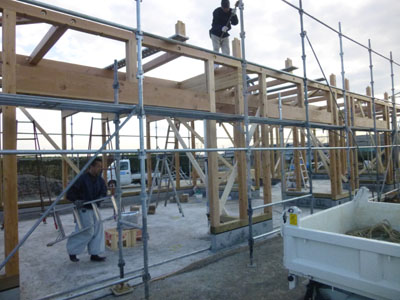 柱、梁の組立